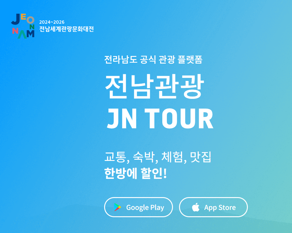 JN TOUR 앱은 단순한 할인 정보를 넘어, 전남 여행의 모든 것을 한 번에 해결해 주는 통합 플랫폼입니다. 교통, 숙박, 식당, 체험 예약 및 결제는 물론, 개인의 취향에 맞춘 맞춤형 큐레이션 서비스까지 제공해요. 여기에 추가로 진행되는 시군별 특별 할인이나 상품권 지급 행사도 놓치지 말고 체크해 보세요. 알뜰하고 똑똑하게 전남 여행을 즐기기 위한 필수 앱, 지금 바로 다운로드하세요!